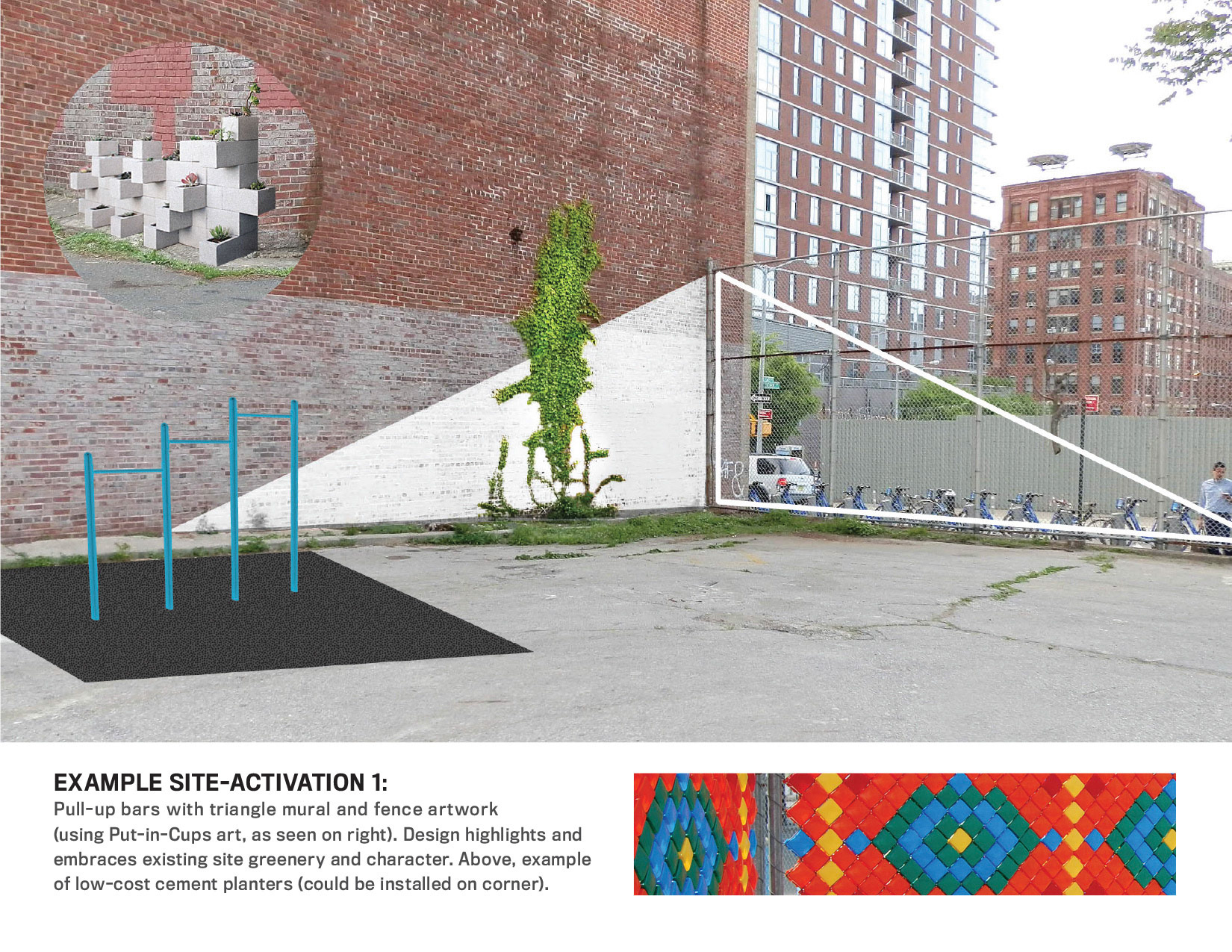 THE DUMBO CIRCUIT was a purposed solution to a urban fitness route for the NYC Parks Department & the Dumbo Improvement District. The design approach came from the stated goals, which were chiefly: Connect seldom used segmented park space surrounding the Manhattan bridge, along with green spaces near the Brooklyn bridge; as well as strengthen community connections by encouraging people to work out together. Given these objectives, “Connection” informed the design of many aspects of the submission. From the branding, to mural and signage applications that visually connected planes, to messaging meant to reflect exercise and connection, for example “Get Fit Together”. The project was a team effort I led by Column Five's NY office. Mural and figure illustration by Riley Hoonan.