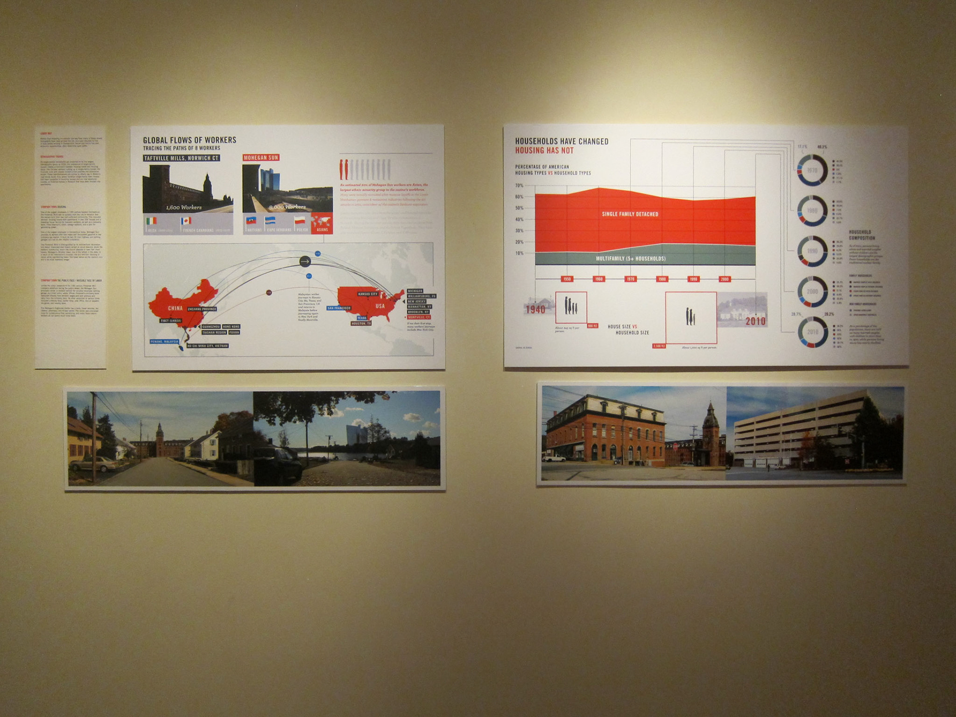 SUBURBANISMS is a show I co-curated with a life long friend (Stephen Fan) for the Lyman Allyn Art Museum in New London, CT in 2014. The show explores the Chinese immigrant casino worker community that lives in Uncasville, CT. Detailing how suburban homes have been rethought and reused for multifamily living, front lawn gardening, and frugal communal living in general. It also takes a look at how Chinese cultural norms play into their usage of space, notions of public and private life, the gambling industry in United States, American notions of the manicured front lawn ideal, and the workers themselves in the form of portraits. A lot of the approach in both concept and design, came from a desire to highlight different cultural perspectives as a means to illuminate and examine not only other cultural practices, but one’s own. This plays out from the most accessible, image/word juxtapositions, to pieces of the show’s title being “backwards” depending on which side of the glass your on, gallery room’s appearing to have white walls from one perspective, and walking the other way, appearing to have red walls, to more in-depth data visualizations.